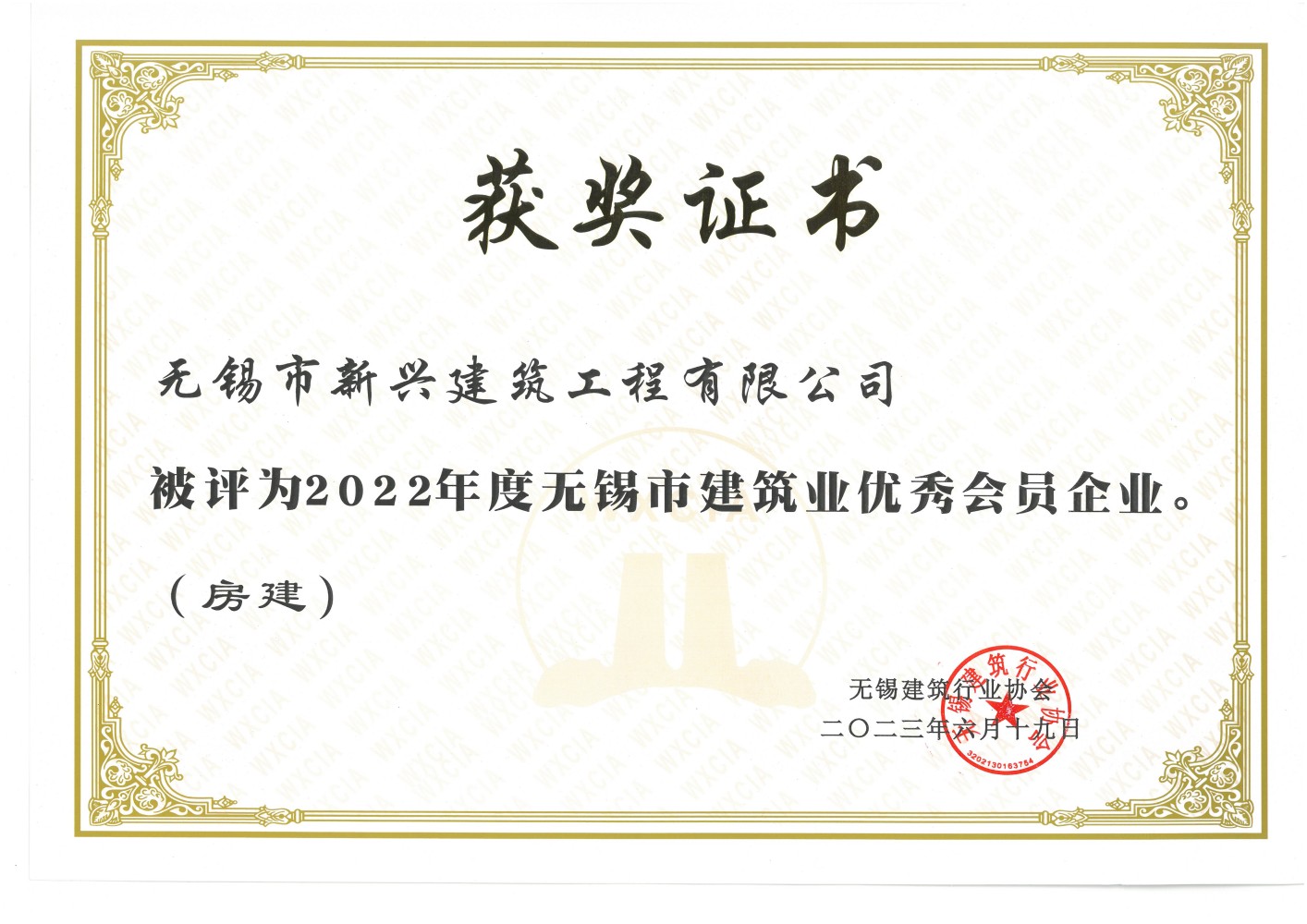 2023.06 2022年度無錫市建筑業(yè)優(yōu)秀會員企業(yè)