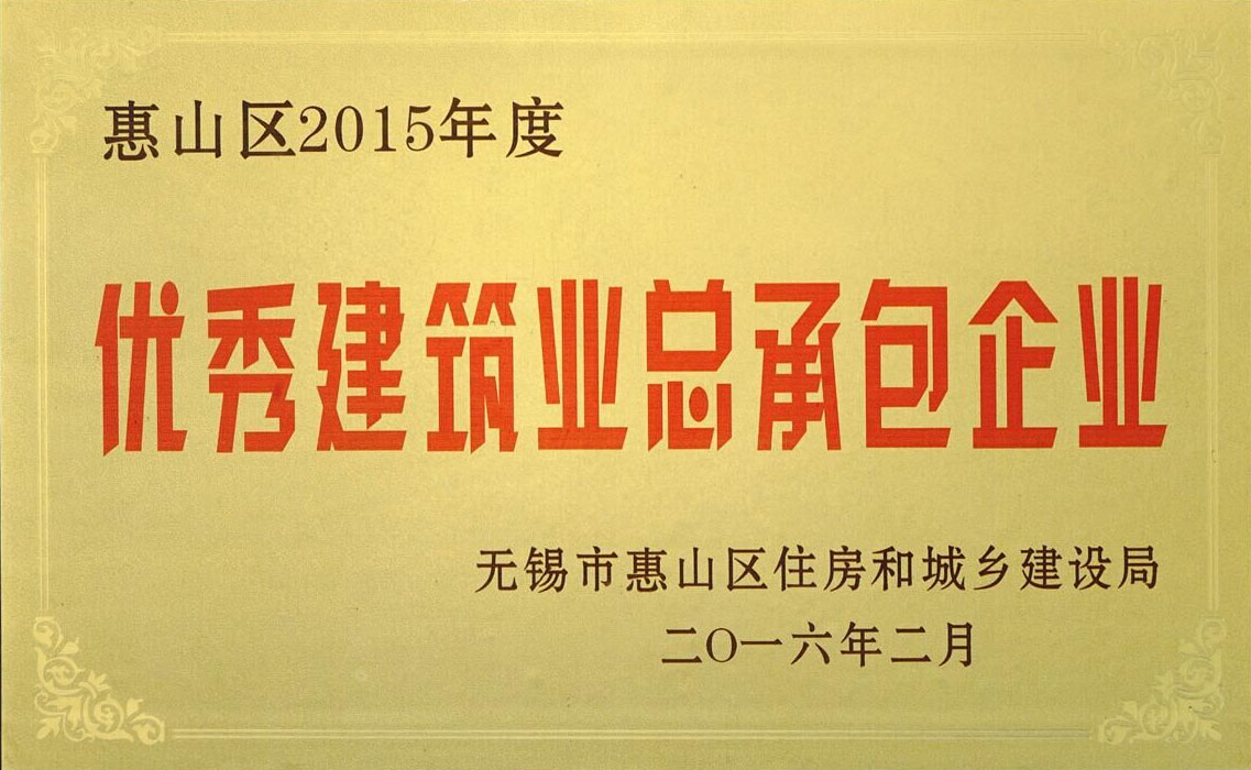2016.02 惠山區(qū)2015年度優(yōu)秀建筑業(yè)總承包企業(yè)