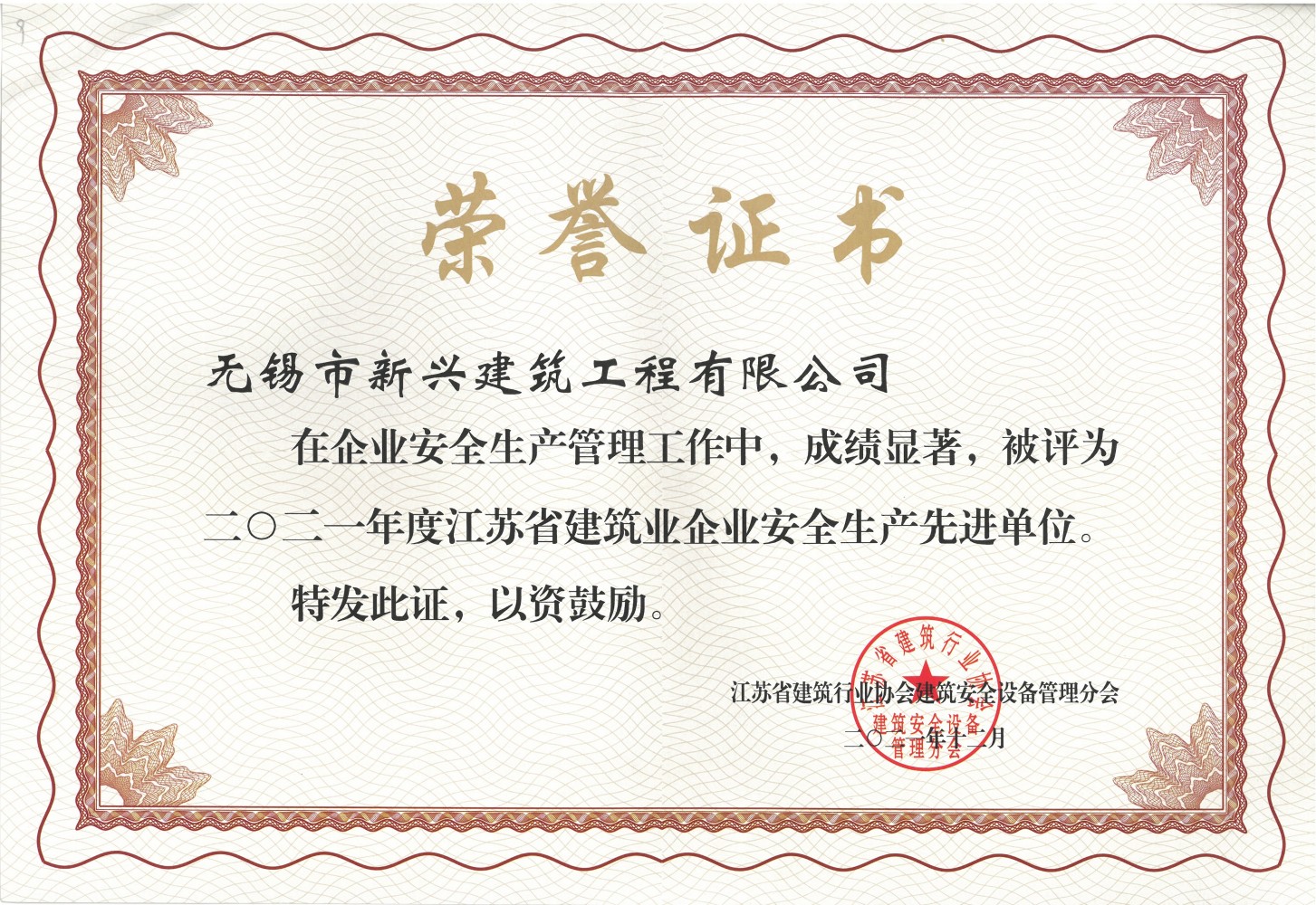 2021.12 2021年度江蘇省建筑業(yè)企業(yè)安全生產(chǎn)先進(jìn)單位