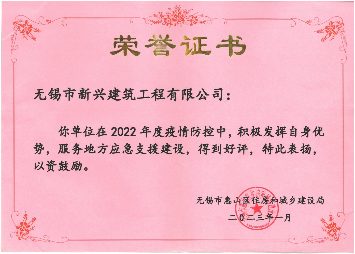 2023.01 惠山區(qū)住房城鄉(xiāng)建設(shè)局疫情防控表彰