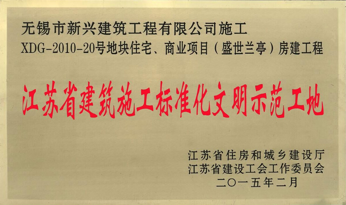 2015.02 XDG-2010-20號地塊住宅、商業(yè)項目(盛世蘭亭)房建工程 江蘇省建筑施工標(biāo)準(zhǔn)化文明示范工地