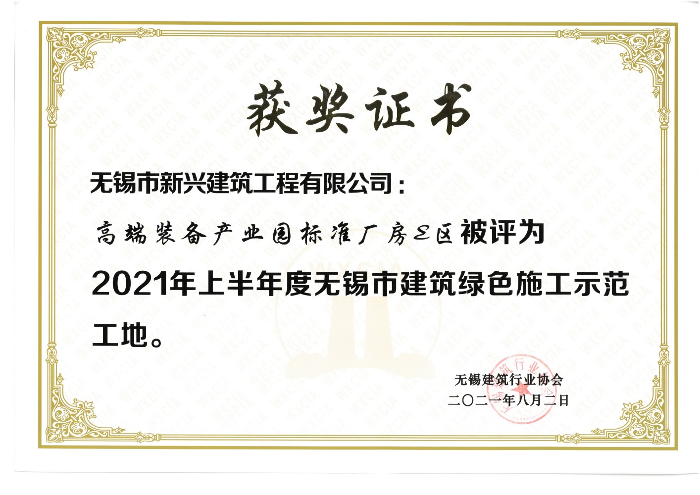 2021.08 E廠房2021年上半年度無錫市建筑綠色施工示范工地
