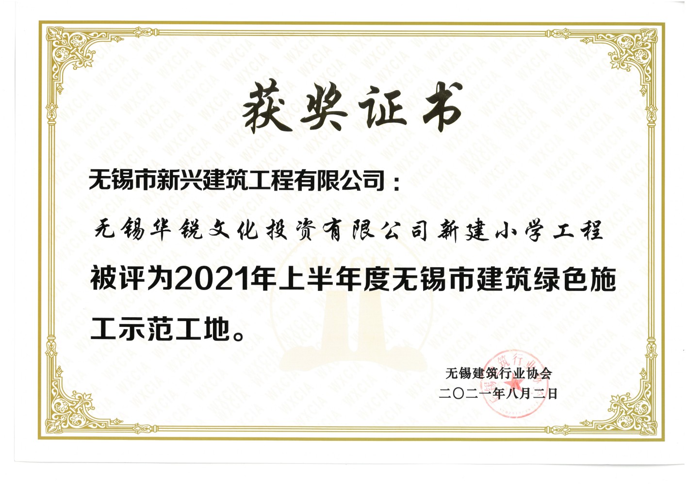 2021.08 華銳小學(xué)2021年上半年度無錫市建筑綠色施工示范工地