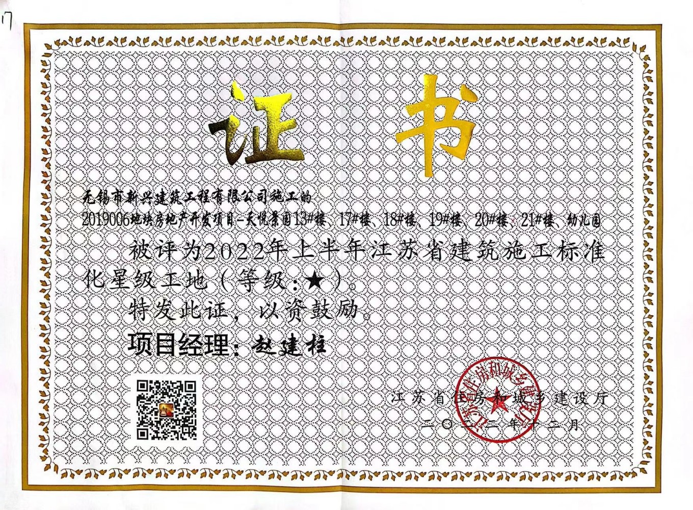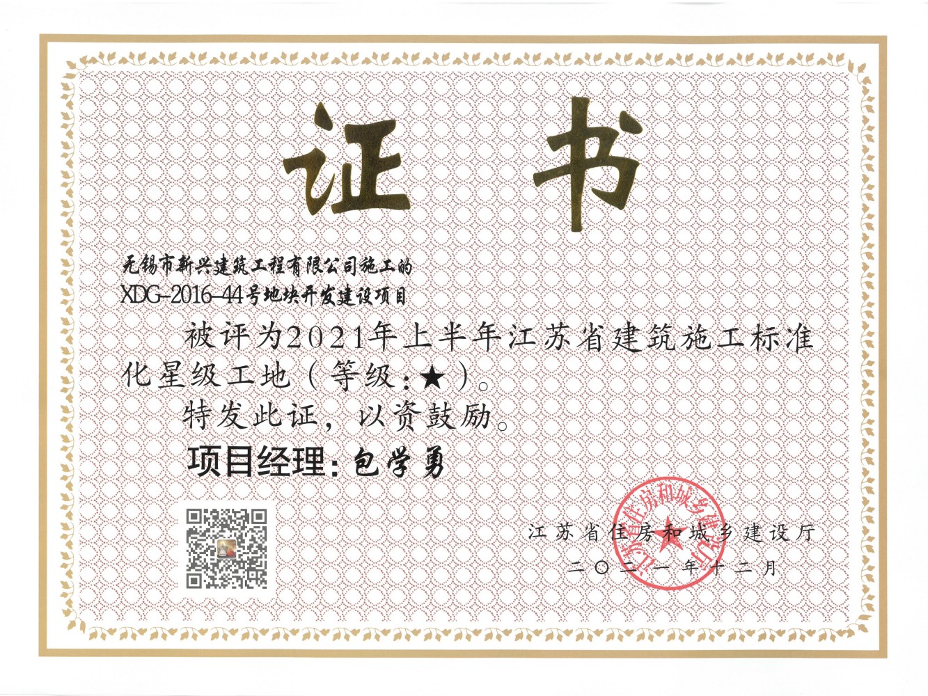 2021.12 大莊里酒店2021年上半年江蘇省建筑施工標準化星級工地