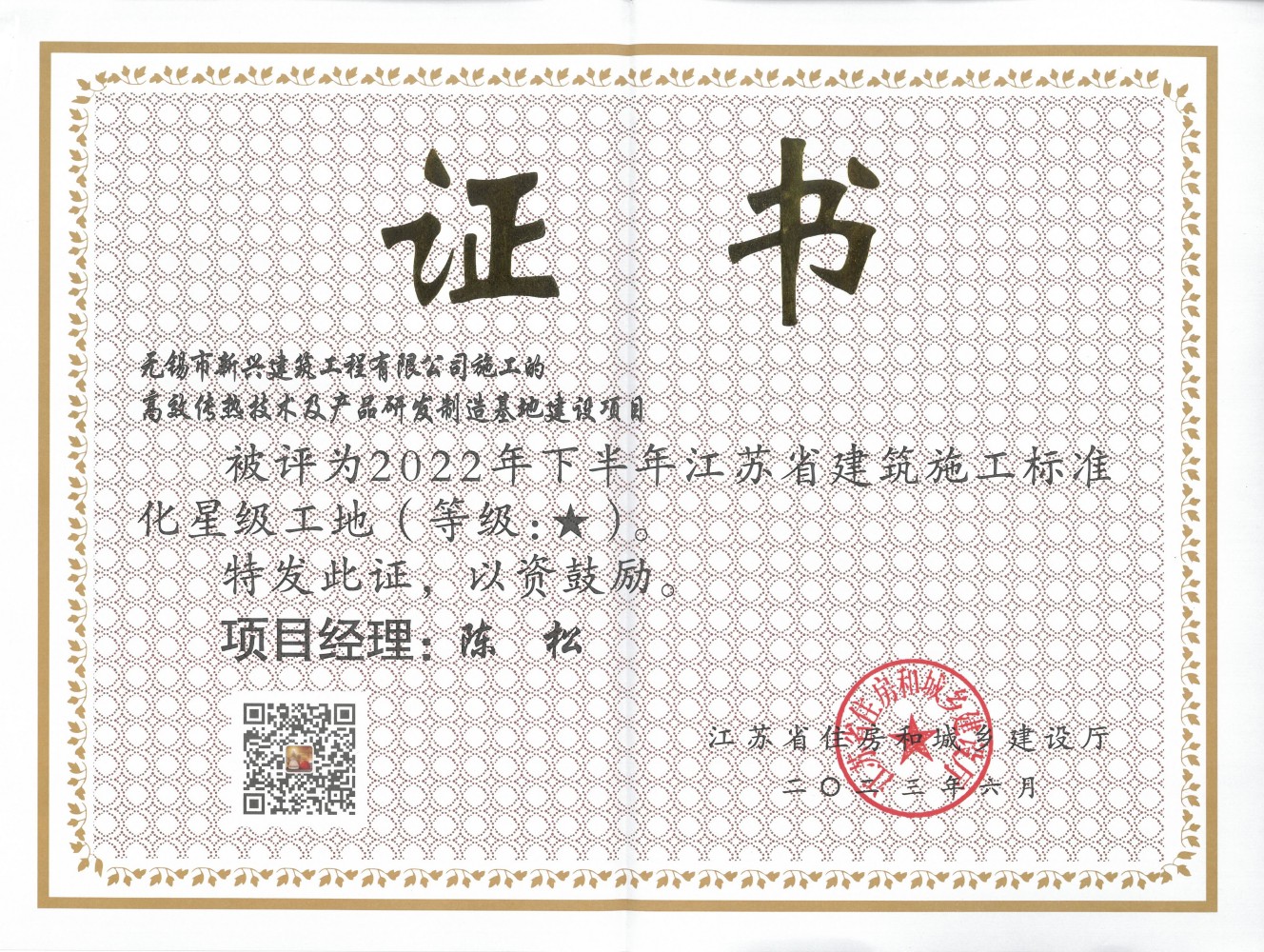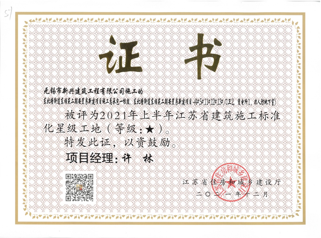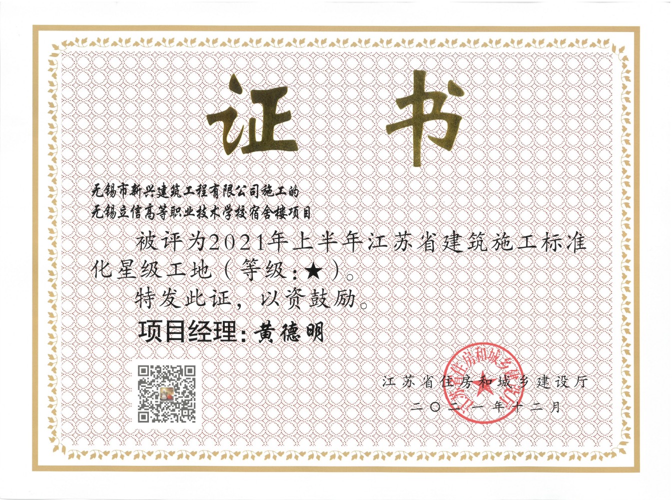 2021.12 立信宿舍樓2021年上半年江蘇省建筑施工標準化星級工地