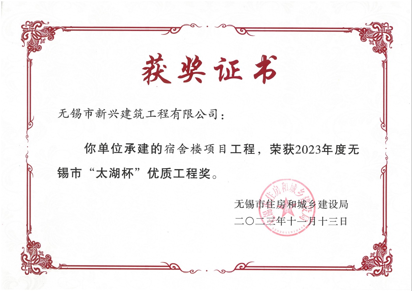 2023.11 新興建筑公司立信宿舍樓2023年度無錫市太湖杯優(yōu)質工程獎